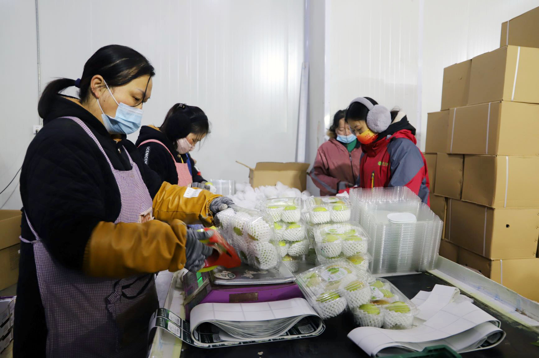 “煜謙主要是為京東、美團買菜、盒馬生鮮、永輝等生鮮電商以及連鎖商超提供精裝果蔬。”煜謙果蔬采配加工中心的負責人樊旭平邊說邊指著他的電子訂貨單邊介紹,“京東主要供應北京、天津、山東等地,盒馬生鮮主要保障北京線上市場的果蔬供應,近期各平臺的訂單量都在增加,像蘋果、黑提、青提等水果最近銷量頗高,我們已經提前和各生鮮平臺做好對接,保證按時按質按量的完成果蔬配送訂單,春節期間我們分揀加工工人也不休息,讓大家能在春節的餐桌上吃到新鮮、安全的果蔬。”