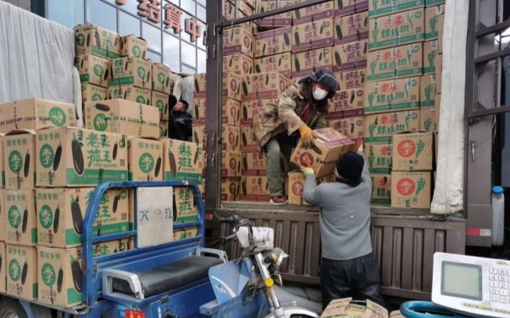 蔬菜交易區的李雪坤,主營甘藍和茄子,正在給內蒙古的超市發貨,李雪坤在湖北、云南、甘肅等地分別設置了甘藍、圓茄、洋蔥種植基地,貨源充足。李雪坤表示,除了京津冀,東三省、內蒙古、山西等地的訂單都排到年底了,所有工作人員都就地過年保供了,不能斷了檔。