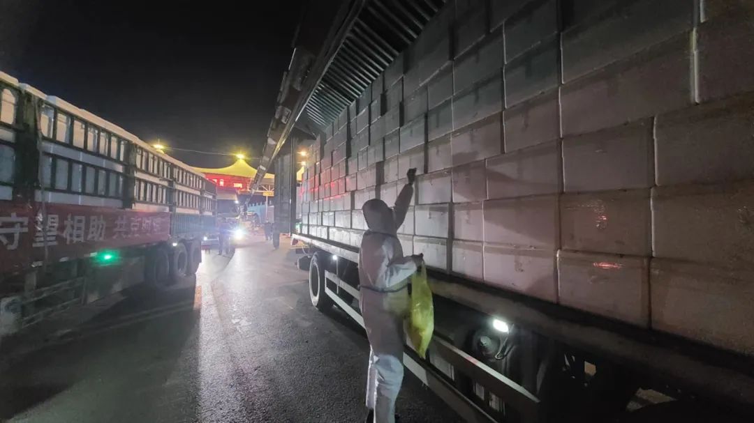 在6個上海保供物資分揀包裝區(qū)設(shè)立36條分揀裝配線,從4月1日下午13點物資陸續(xù)抵達加工區(qū)。高碑店市各科局聯(lián)合首衡河北新發(fā)地員工和場內(nèi)商戶共計1500余人,連夜不眠,趕工不停歇,按照標(biāo)準(zhǔn)工作流程和品質(zhì)要求進行貨品的分揀、包裝、裝箱。在對物流車輛進行全面消殺后,裝卸人員將物資裝運上物流車。晚上22點,第一輛滿載著保障物資的物流車從富農(nóng)門駛出,運往高碑店鐵路貨運站。在火車貨運站,高碑店市委市政府部署執(zhí)法局、交通局、農(nóng)業(yè)局等相關(guān)部門組織人員連夜進行貨物裝卸、車輛調(diào)度、交通疏導(dǎo)以及現(xiàn)場核酸檢測等工作。