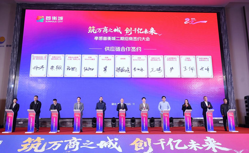 11月28日,“筑萬商之城 創千億未來”孝感首衡城二期招商簽約大會在湖北孝感召開。近800名各界代表齊聚,見證華中農產品商貿樞紐升級。