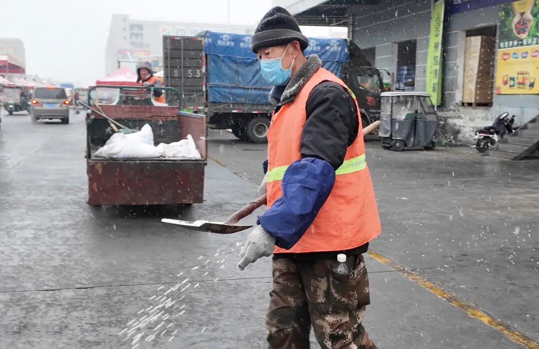 場內高效運轉,秩序與安全雙保障。降雪期間,市場內部的平穩運行至關重要。在園區主要通道,物業主管張師傅正帶領團隊緊張作業:“我們從凌晨就開始清掃主干道積雪,并鋪設防滑墊。場內儲備的除雪設備充足,能確保交易區和通行要道始終安全暢通。”交易大廳內,管理人員加大了巡查頻次,嚴格核查價格公示,維護公平的交易環境。食品安全檢測中心則對因運輸時間可能延長的果蔬商品加強了農殘等項目的抽查檢測,實現重點品類100%覆蓋,嚴守質量安全關口。