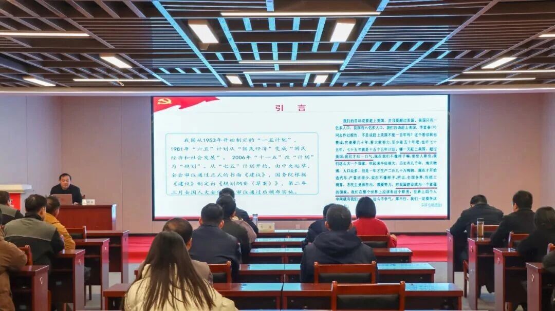 本次宣講特別邀請區委黨校馬明奎同志作專題輔導報告。馬明奎以《學習貫徹二十屆四中全會精神 確保基本實現社會主義現代化取得決定性進展》為題,從全會召開的重大意義、“十四五”時期取得的輝煌成就、“十五五”時期的戰略部署及貫徹落實的實踐要求等方面,進行了系統闡釋和深入解讀。報告視野宏闊、論述精辟、內涵豐富,既有理論高度,又有實踐深度,為全體參會人員深刻領會全會精神實質、準確把握未來發展方向提供了有力指導。