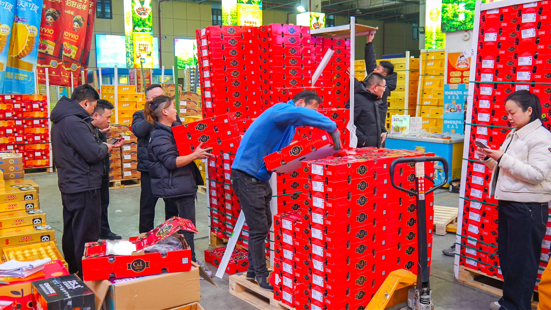 市場活力不僅限于生鮮果蔬。在華北國際貿易港,“高姐網紅零食”檔口前采購商絡繹不絕,其匯集了百余款網紅爆品與特色定制禮盒,近日堅果、膨化食品、熟食禮盒等訂單激增,部分達平日三倍。