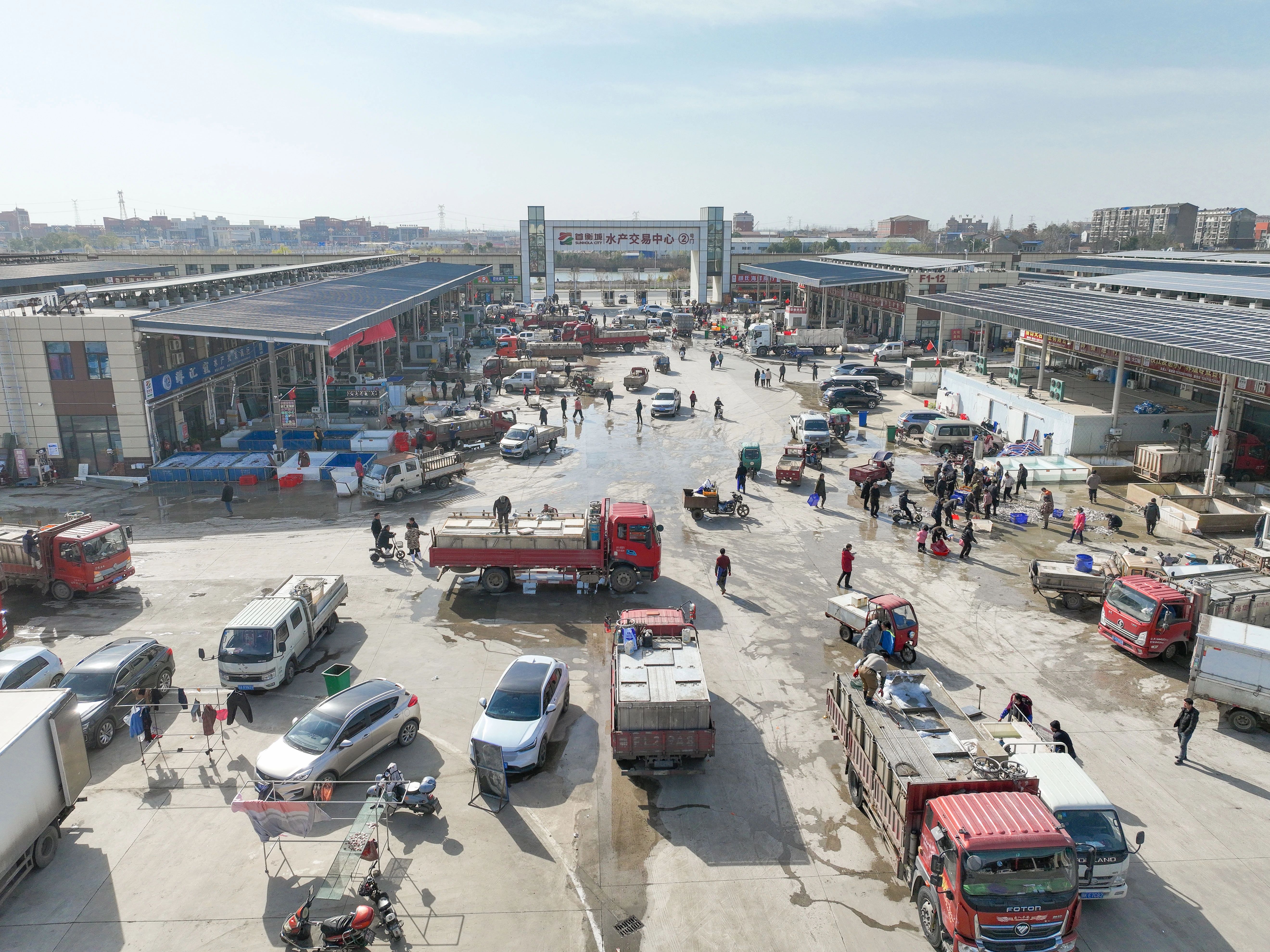 午后兩點的孝感首衡城,暖陽正好,更添幾分旺盛人氣。水產交易區內,裝載著鮮活魚蝦的貨車川流不息,商販的吆喝聲、電子結算的提示音、魚蝦的碰撞聲交織成熱鬧的交響曲。